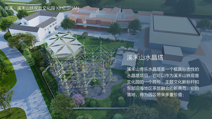 奇乐集团与七匹狼集团达成合作,为其旗下的安溪溪禾山铁观音文化园量身打造一座集拓展、美学与文化于一体的高空拓展水晶塔。