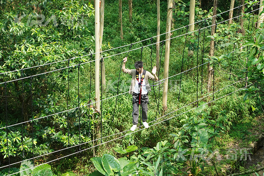 通过悬空桥梁、攀爬网道、飞狐索道、平衡木桶和摇摆秋千等多样化关卡,广东奇乐文旅有限公司将树木连成一条条刺激有趣的线路。这些关卡需要参与者运用爬、滑、游、跨、跳、飞等动作通过,不仅考验体力,更需要平衡力和身体协调能力。