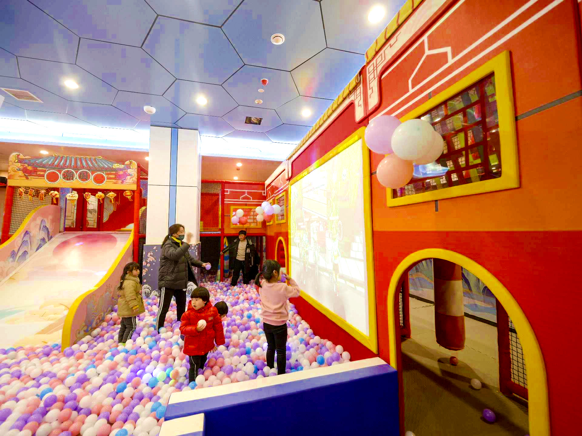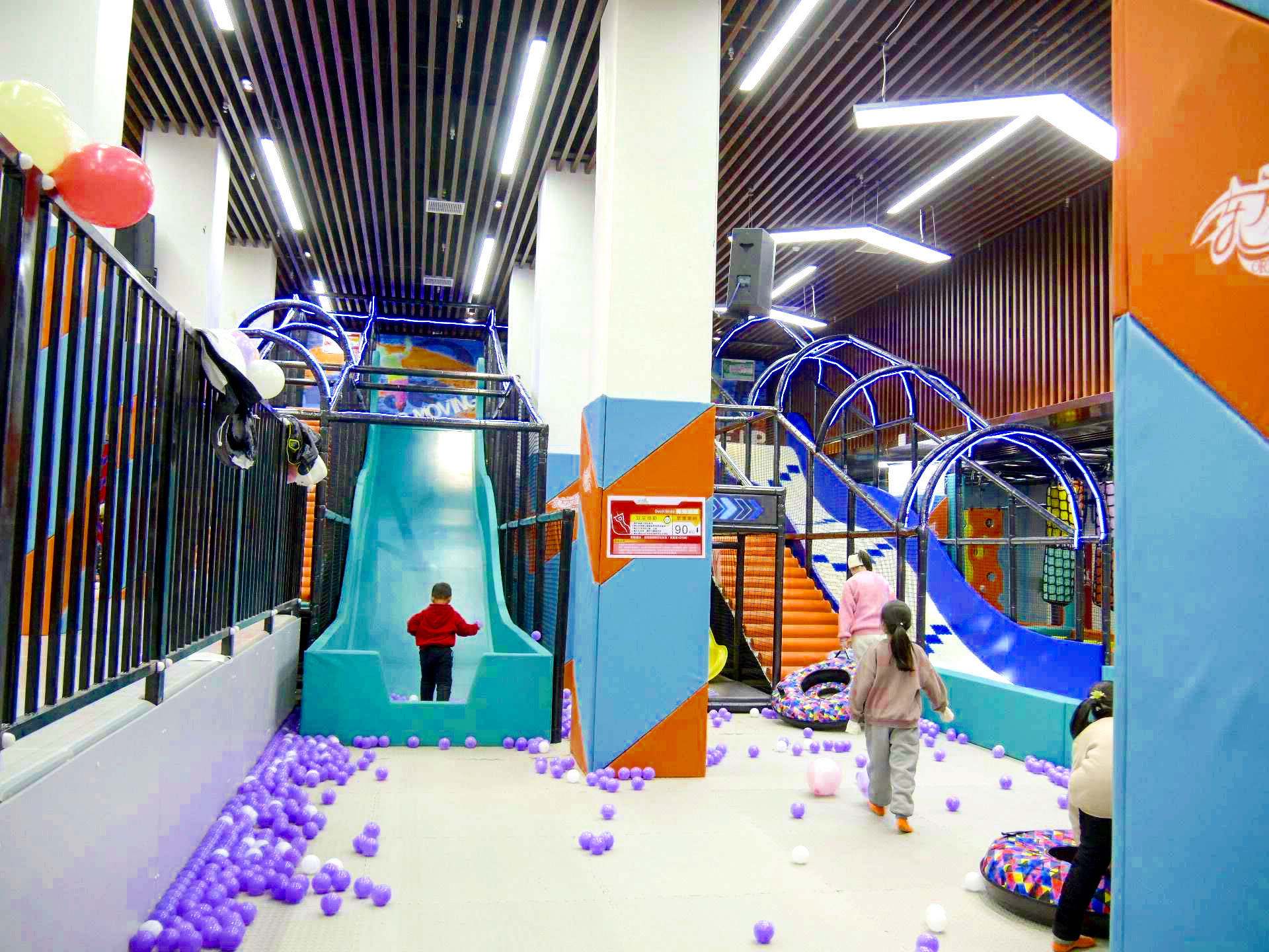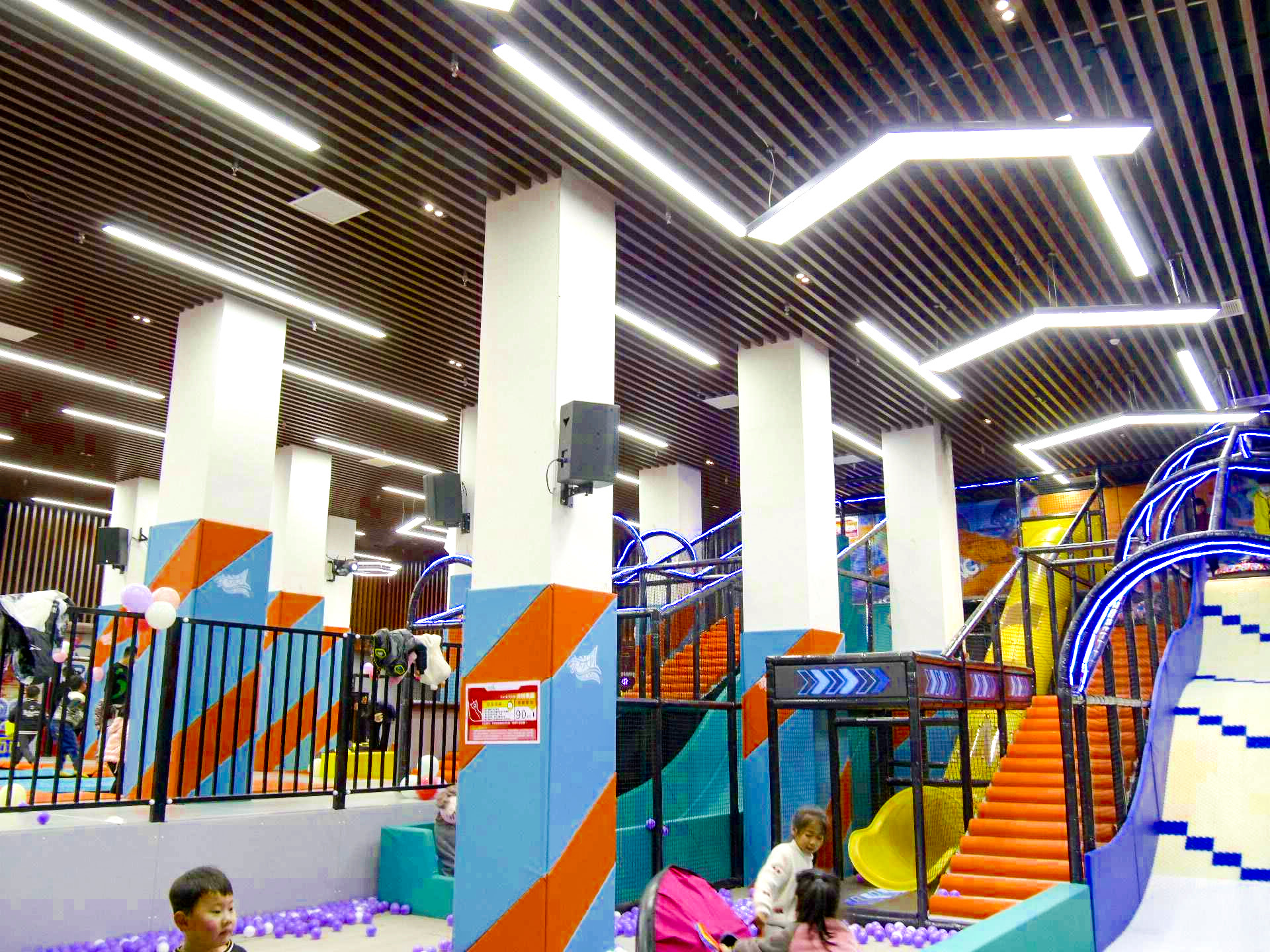 解决方案:采用垂直钢结构,设计了三层游玩空间。底层是迷宫钻洞和互动投影区,中层是绳网攀爬和平衡木,顶层是观景滑梯。利用狭长空间的特点,设计了一条贯穿始终的“探险路线”,孩子们从入口进入,层层通关,最后从滑梯滑出。开业后,这个120平米的乐园周末单日客流突破200人次,成为商场人气最高的区域之一。