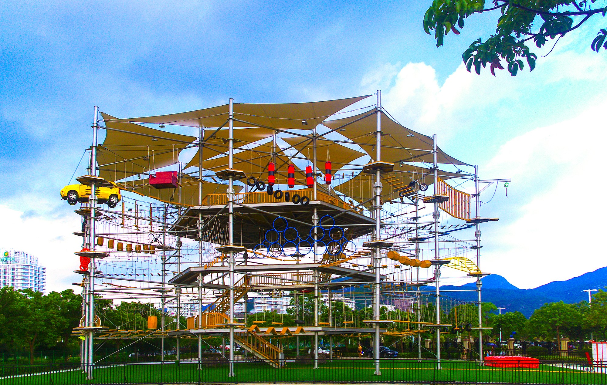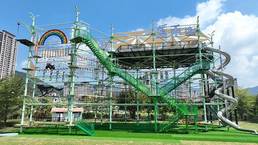 数据印证:这座总高度29.8米、占地1100平方米的立体探险设施,项目运营首季度即吸引超10万人次体验,周末高峰时段需预约等候2小时。其成功经验已复制到惠州罗浮山丛林穿越探险乐园等全国20余个文旅综合体,形成“奇乐模式”的行业标杆。