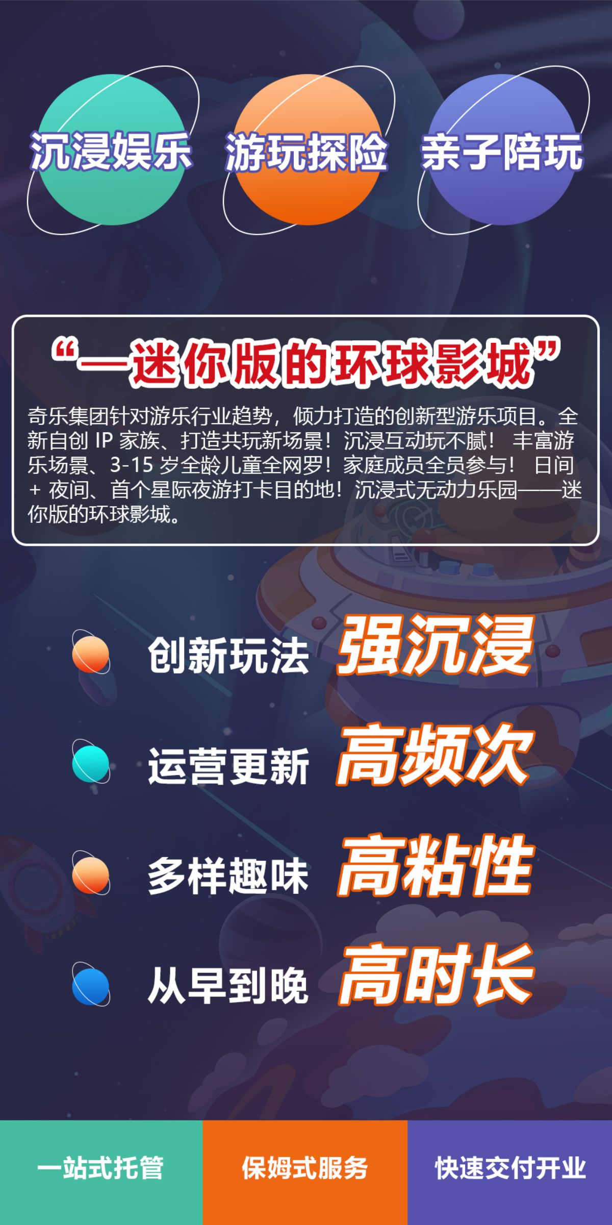 奇乐星球乐园是奇乐集团最新推出的包含室内外项目的综合型乐园。 “奇乐星球”作为奇乐集团新打造的乐园品牌,已在多地建设落地。 奇乐星球乐园 是“迷你版的环球影城”,将IP融入到乐园中,打造第一无二的影视乐园新模式。