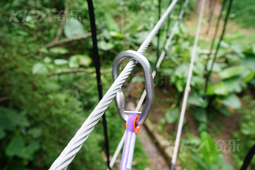 生态友好的“树木友好型”安装系统:所有依托树木的支撑点,均采用专利的可调节树木保护环。该装置像为树木穿上了一副宽松的“保护甲”,通过大面积分散压力和定期松紧调节,确保树木的健康生长不受影响,真正实现了“设施为树让路”。