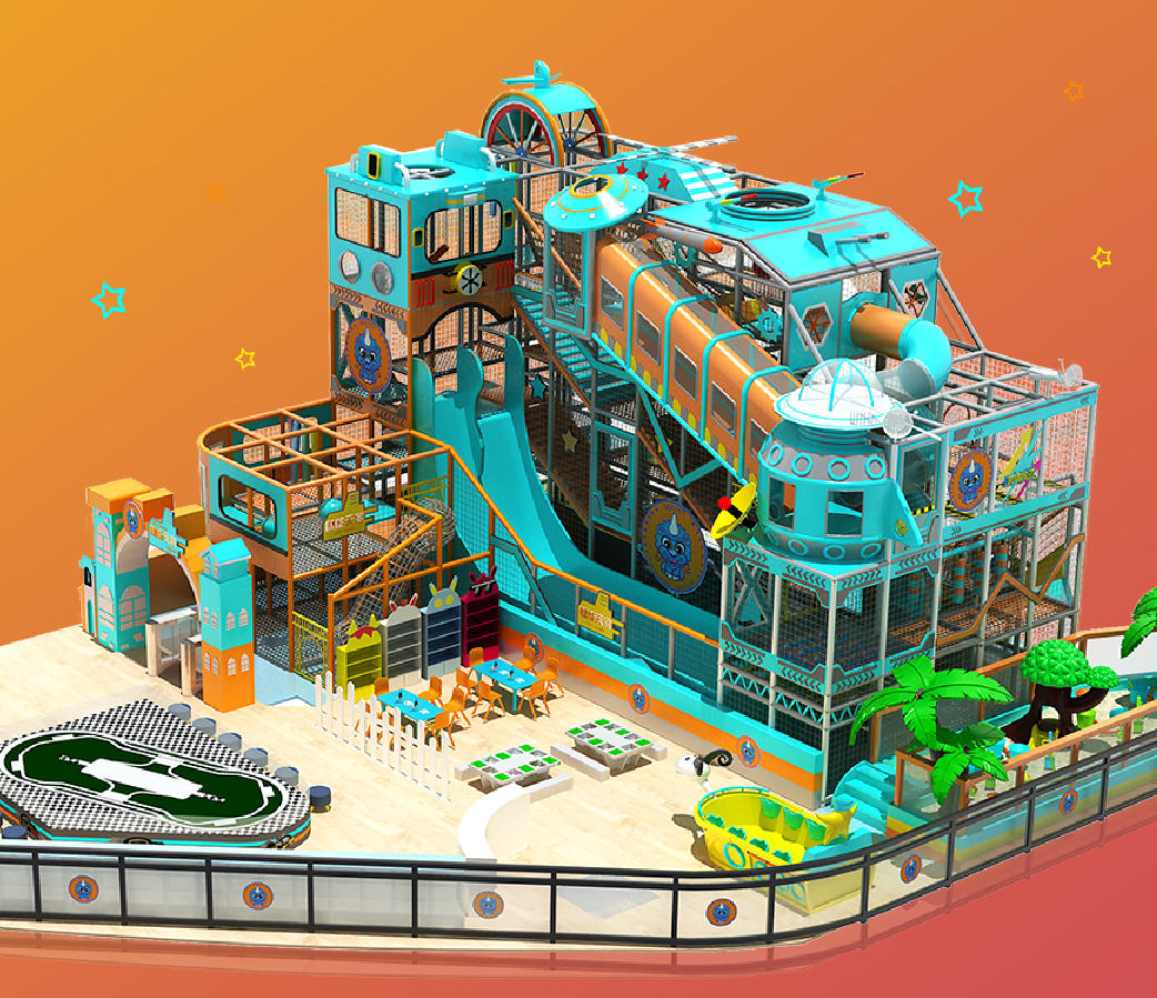 全龄段乐园的安全设计必须是动态和分级的。广东奇乐文旅有限公司采用 “主动隔离”与“被动防护”相结合的策略。“主动隔离”即通过物理布局和视觉标识,自然引导不同年龄段孩子前往适合的区域;“被动防护”则体现在每一件游乐园设备的细节上:更高龄区域的防护网孔洞更科学,低龄区域的地垫缓冲系数更高。
