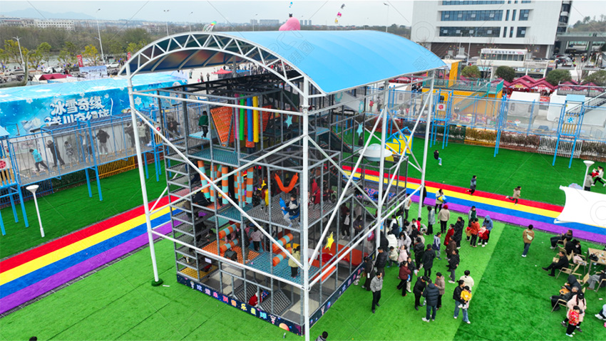 一夜风雪过后,北方某乐园的金属滑梯表面结了一层薄冰,而旁边由广州奇乐游乐设备有限公司提供的组合攀爬架却因特殊的防冻涂层处理,依然保持干燥可用,成为冬日里唯一正常运营的户外设施。