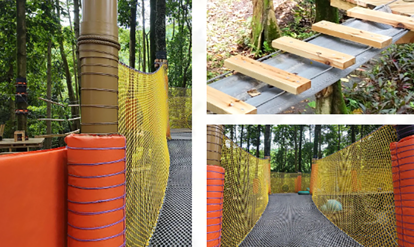 悬空桥梁:考验平衡与胆量,可设计成独木桥、Z形桥、摇摆桥