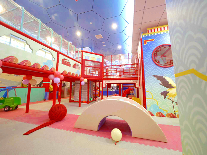 解决方案:采用垂直钢结构,设计了三层游玩空间。底层是迷宫钻洞和互动投影区,中层是绳网攀爬和平衡木,顶层是观景滑梯。利用狭长空间的特点,设计了一条贯穿始终的“探险路线”,孩子们从入口进入,层层通关,最后从滑梯滑出。开业后,这个120平米的乐园周末单日客流突破200人次,成为商场人气最高的区域之一。