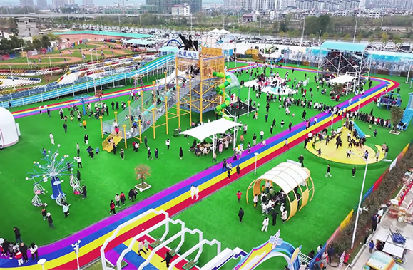 案例参考:广州奇乐的无动力游乐设备产品线丰富,小型项目30万起步,即可打造一个功能齐全的户外亲子乐园。