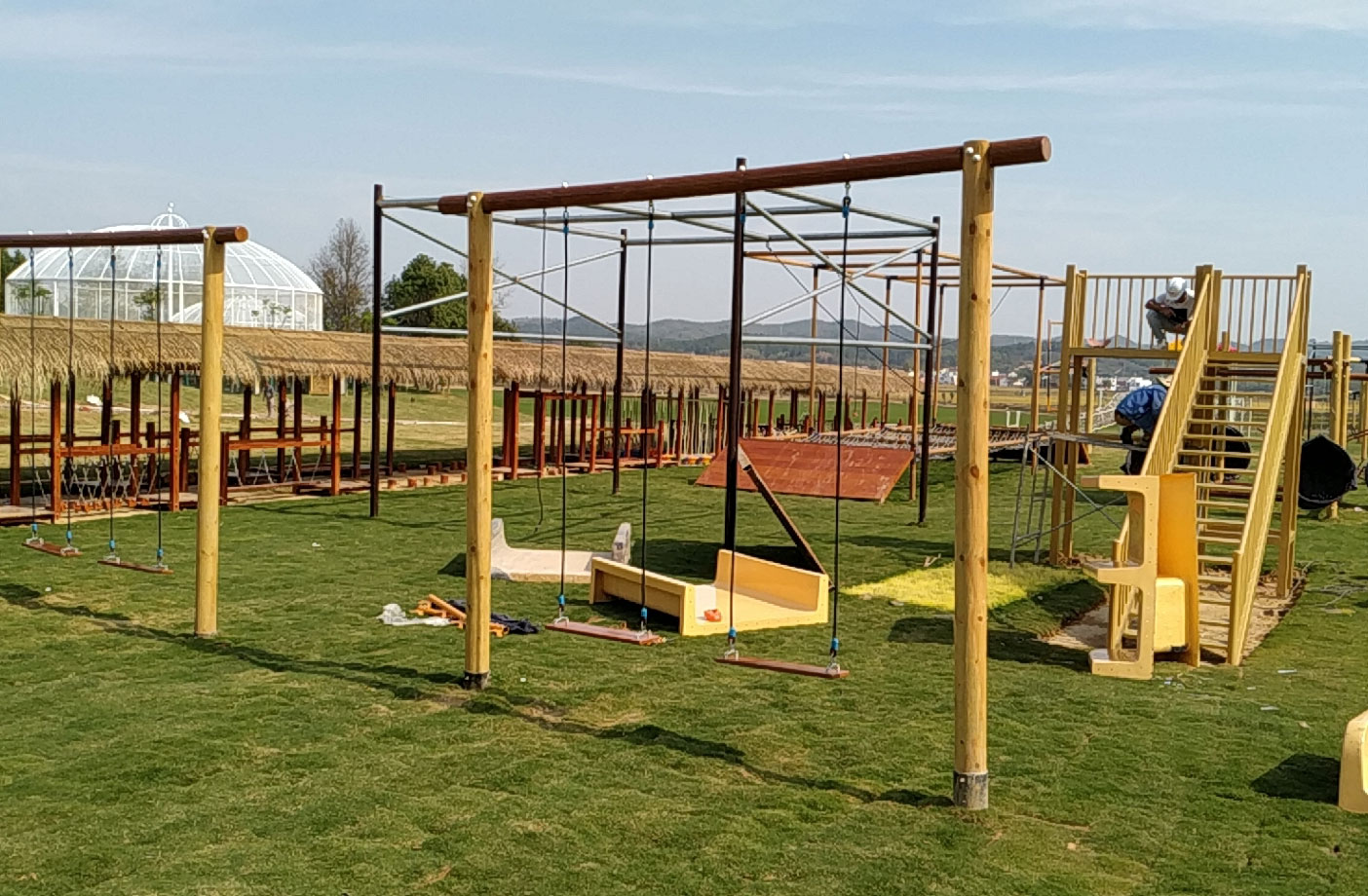 奇乐集团是游乐设备实力厂家,我们的项目涉及室内和户外,室内项目主要有儿童乐园、淘气堡、蹦床公园、综合型运动公园、弹跳迷宫、室内儿童拓展等;户外的项目有户外儿童公园、丛林拓展、高空秋千、高空拓展等。本案例就是奇乐做的户外儿童乐园项目,是针对于儿童亲子游乐的项目,主要就是户外的儿童游乐设施。